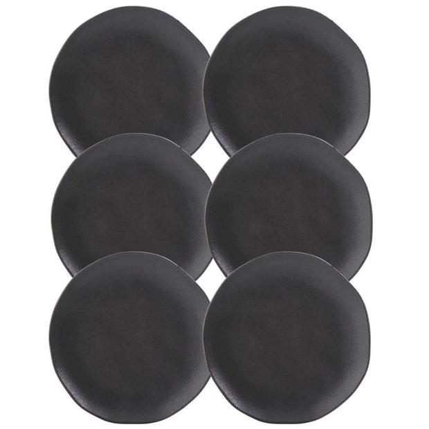 Kit 6 Pratos Orgânicos 19cm Preto de Cerâmica Stoneware Sushi Sashimi Porto Brasil.