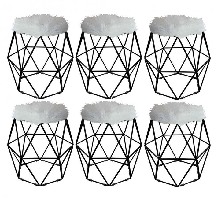 Kit 06 Puff Banqueta Aramado Luna Para Penteadeira Hexágono Base Preto Pelúcia Pelo Alto Branco - Ahazzo Móveis