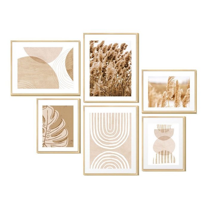 Kit 6 Quadros Decorativos Abstrato Boho Trigo Bege Minimalista