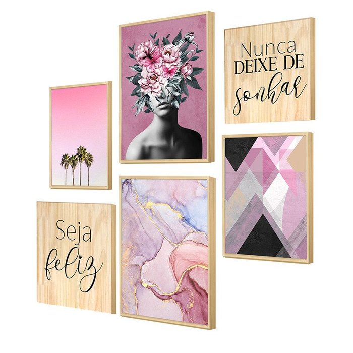O Kit com 6 Quadros forma uma decoração linda e marcante para qualquer ambiente, seja para sala, quarto, escritório ou aquela parede no corredor! Uma composição pensada para ser versátil e elegante. A harmonia formada pelos quadros com moldura caixa e os quadros em madeira Pinus crua, torna possível criar diferentes tipos de combinação.