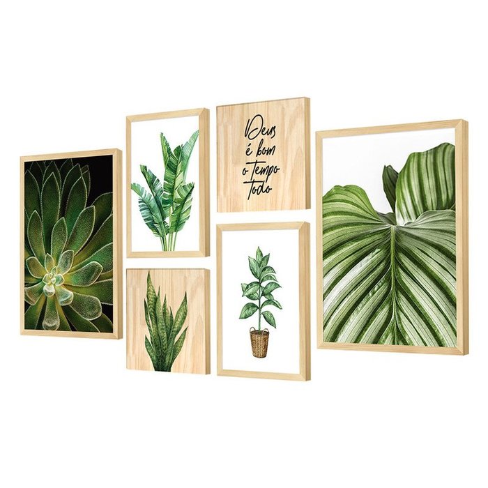 Kit 6 Quadros Decorativos Plantas Folhagens Frases Sala Quarto