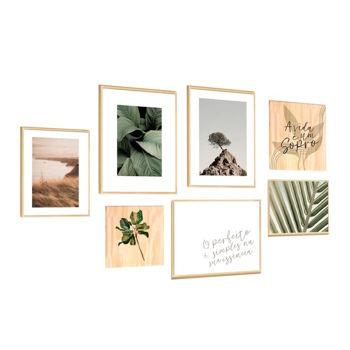 Kit 6 Quadros Minimalista Frases Folhagens Natureza