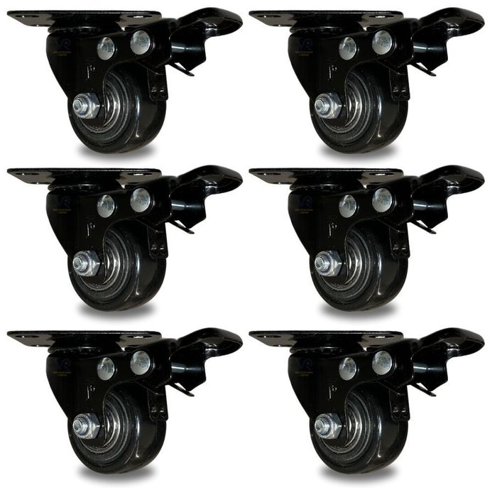 Kit 6 Rodinhas Giratória Refoçada 40mm Black com Trava e com Rolamento Anti Risco 200kg para Moveis Preto