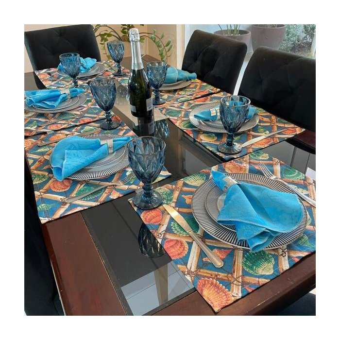 Kit 6 Serviços Americanos Jacquard Conchas fundo Azul Forte - 35x45cm