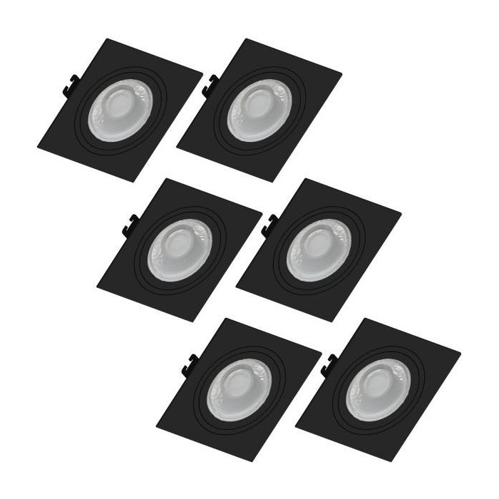 Kit 6 Spot LED Direcionável Quadrado Preto Embutir 4,9W Branco Quente 3000K Luz Amarela