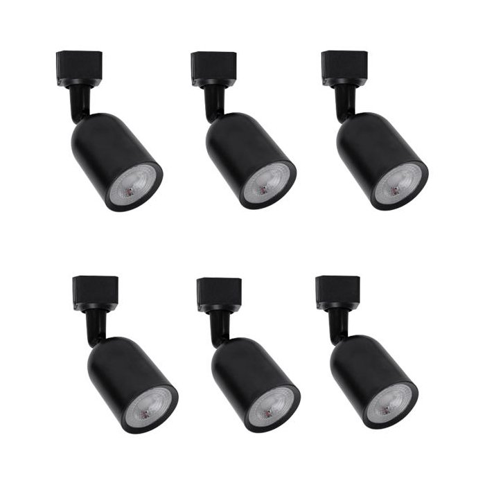 Kit 6 Spot Trilho Direcionavel LED 7W Branco Quente 3000K Preto Cozinha Zan40