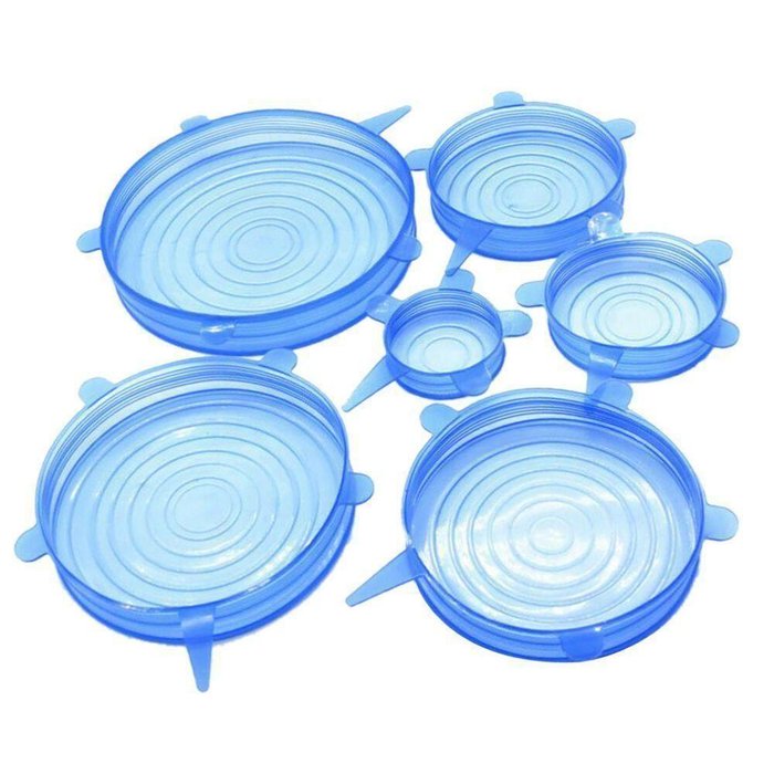 Neste Kit você recebe 6 Tampas de Silicone Reutilizáveis.