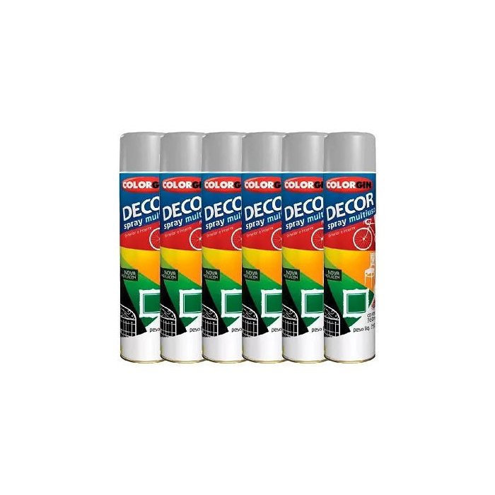 Kit 6 Tinta Spray Brilhante Uso Geral Cinza Colorgin