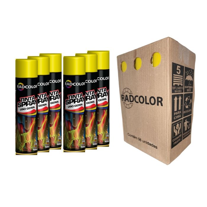 Kit 6 Tinta Spray Uso Geral Amarelo Brilhante Radcolor 400ml