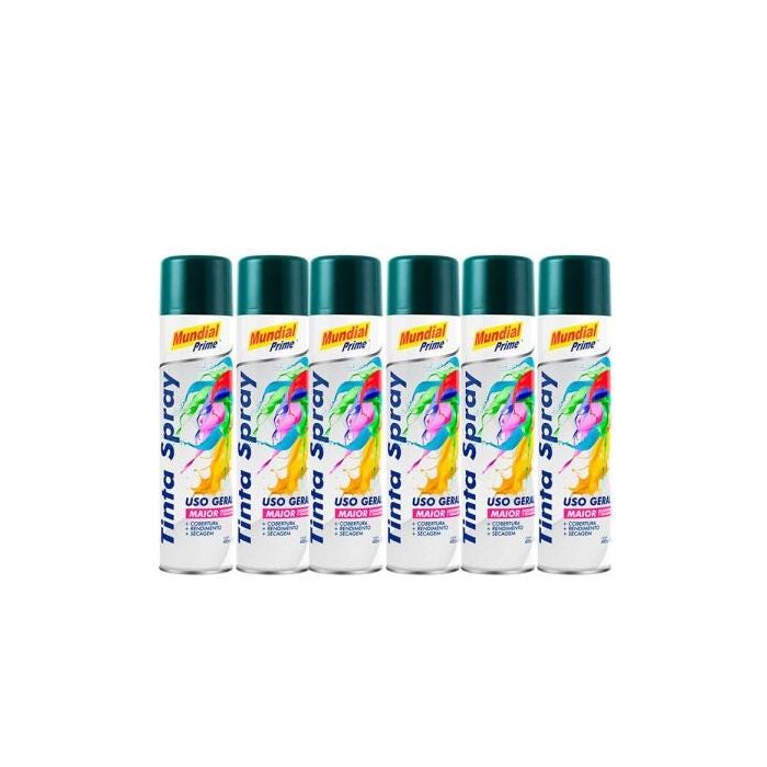 Kit 6 Tintas Spray Brilho Verde Escuro Mundial Prime