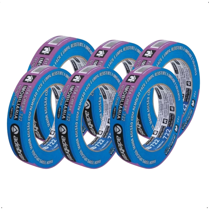 Kit 6 Un Fita Crepe Azul 722 Imobiliária Adelbras 24mmx50m