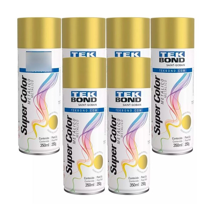Kit 6 Unidades Tinta Spray Metálico 350ml Tekbond metálico