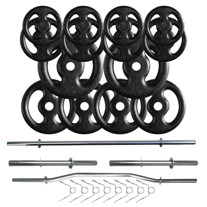 Kit 60 Kg de Anilhas Ferro + 02 Barras de 40cm + Barra W + Barra 120m