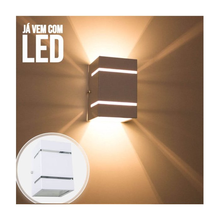 DESCRIÇÃO DO PRODUTO: Arandela com efeito de 2 fachos e frisos, cria um lindo efeito luminoso, extremamente resistente a sol, chuva e maresia.Produzida em alumínio não enferruja nunca. Ideal para ser usada em áreas externas e internas, fácil instalação. Sua pintura eletrostática confere extrema proteção e durabilidade. Um toque de beleza que valoriza sua casa. ESPECIFICAÇÕES TÉCNICAS: - Cor: Branca - Material da Arandela: 100% Alumínio e Vidro. - Voltagem da arandela: Bivolt 110/220v - Soquete: G9 halopin - Tamanho: 10 cm de largura x 15 cm de altura x 10 cm de profundidade - Utiliza 1 lâmpada ESPECIFICAÇÕES TÉCNICAS DA LÂMPADA : - Potência da lampada em watts: 5w - Potência da lâmpada em lumens: 300 lm - Vida útil média da lâmpada: 30 mil horas - Tamanho da lâmpada: largura 2cm x altura 6cm - Ângulo de abertura da lâmpada: 360° - Voltagem da lâmpada: Bivolt 110/220V - Cor: Branco Quente (3000K) ITENS INCLUSOS: - 06 Arandela Frisos e Fachos - 06 Lâmpada LED G9 5W - Parafusos para instalação