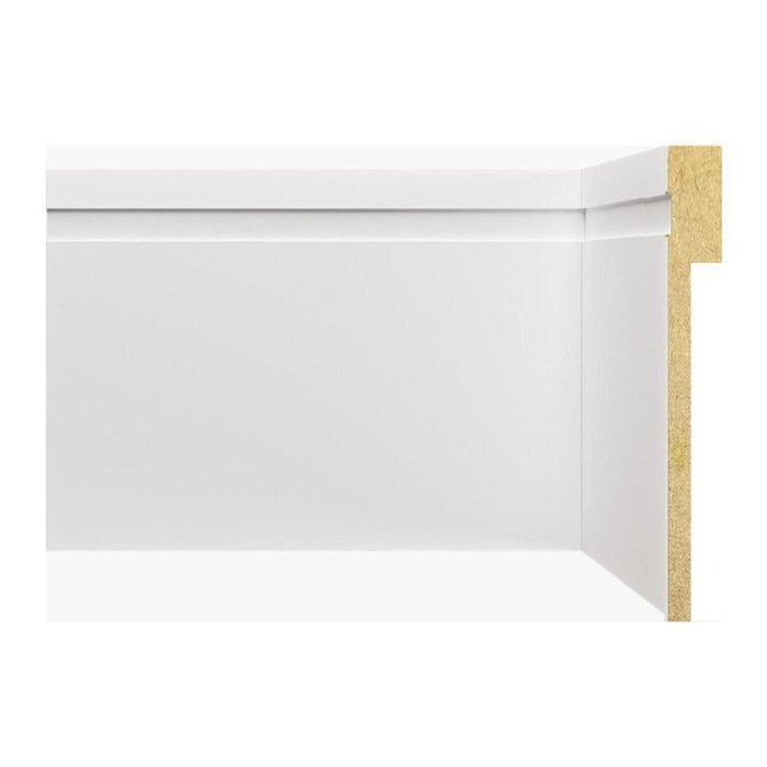 Rodapé revestido com melamina de alta resistência, pronto para instalação e dispensando pintura. Produzido com MDF de qualidade reconhecida internacionalmente, o material alia eficiência técnica a práticas sustentáveis. Sua estrutura estável evita empenamentos, garantindo um acabamento final de excelência. O revestimento melamínico, composto por vernizes, pigmentos e resinas de alta qualidade, assegura durabilidade e preservação da tonalidade original, sem oscilações de cor, independentemente do ambiente em que o produto é instalado.