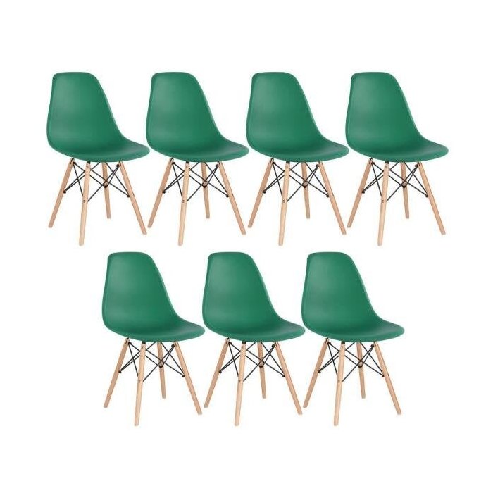 Kit 7 Cadeiras Charles Eames Eiffel Dsw - Base de Madeira Clara - Verde Escuro