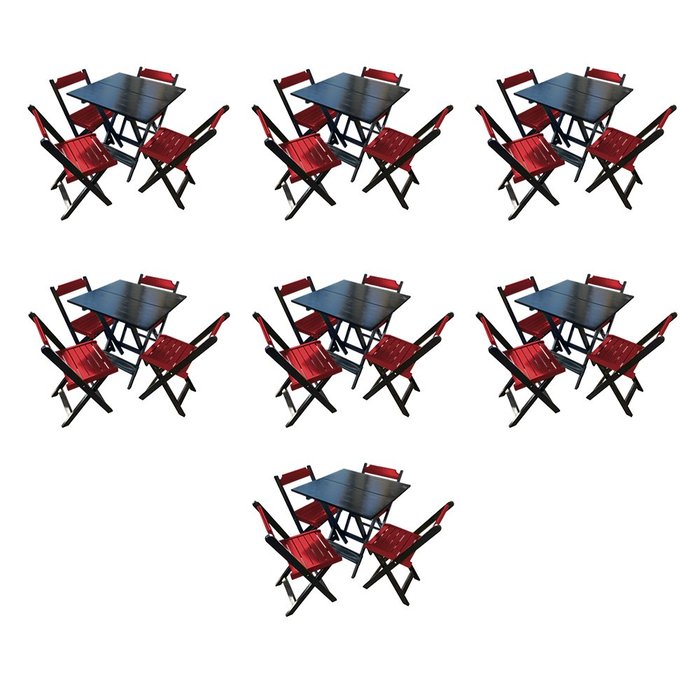 Kit 7 Mesas de Madeira Dobrável Preto 70x70 com 4 Cadeiras Dobráveis Vermelho