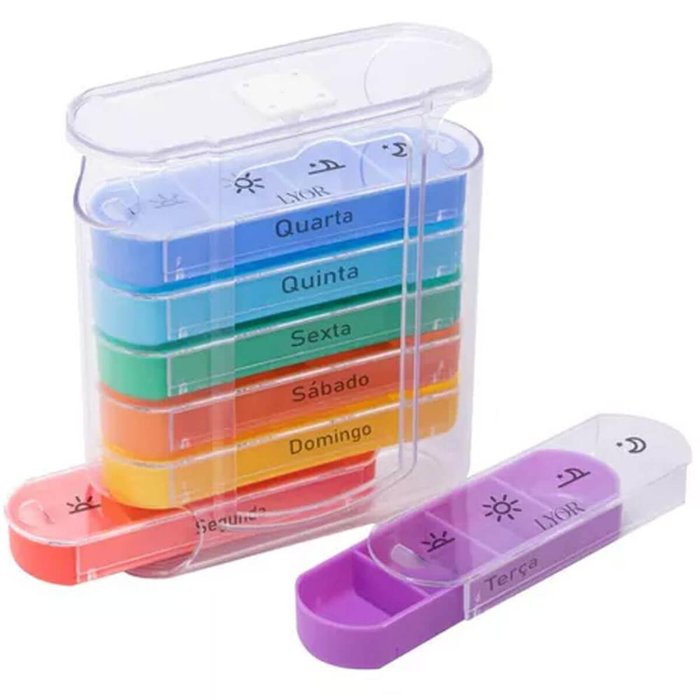 O Conjunto de 7 organizadores para comprimidos é uma solução prática e eficiente para o armazenamento e a administração de medicamentos. Com dimensões de 13 cm x 11,5 cm x 4,5 cm, cada organizador é projetado para facilitar o uso diário. Cada compartimento é rotulado com o dia da semana, ajudando na correta administração dos medicamentos. Ajuda a evitar esquecimentos e confusões na hora de tomar os remédios, e também é ideal para pessoas que seguem tratamentos diários ou para aqueles que cuidam de familiares idosos.