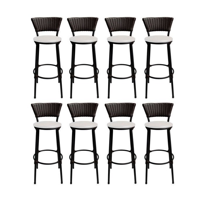 Kit 8 Banco Alto Bistro Cuba Aço Preto Junco Sintético Marrom Assento Branco