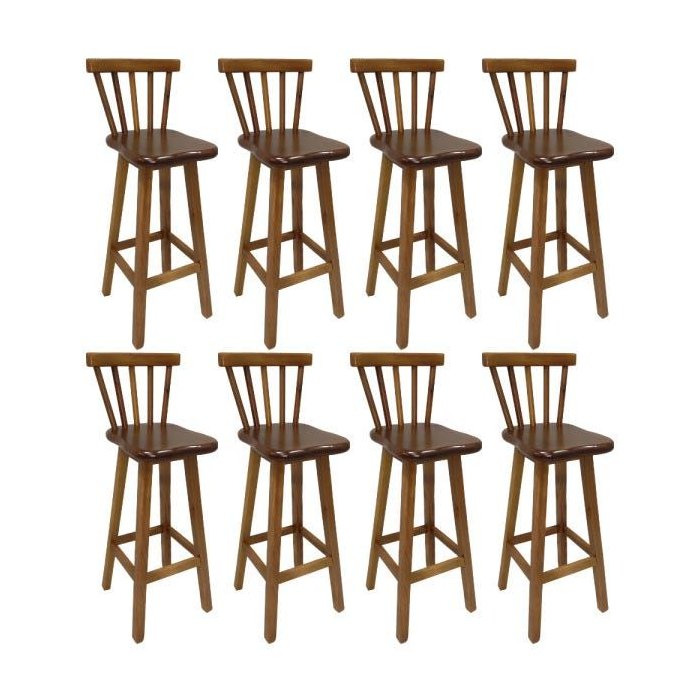 Kit 8 Banqueta Alta de Madeira com Encosto Country