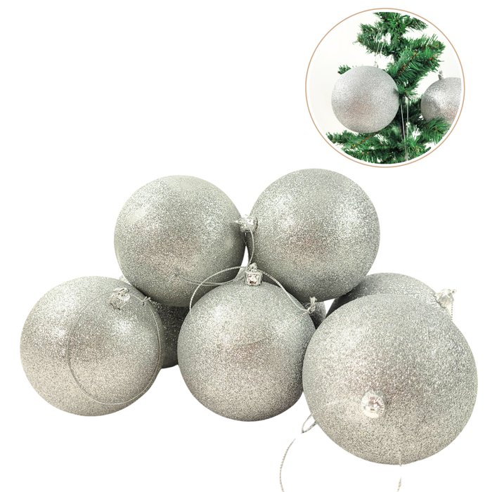 Kit 8 Bola de Natal Prata Glitter 10cm para Árvore Prateada