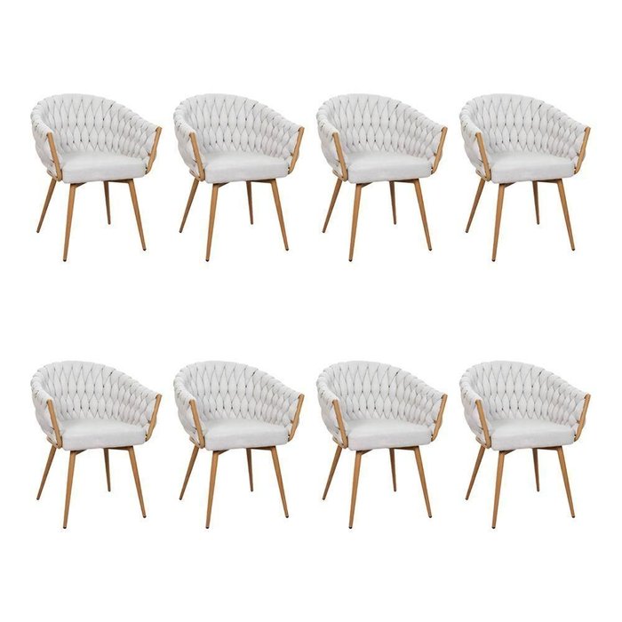 Kit 8 Cadeira De Aproximação Eloá Estrutura Aço Carbono Laminado Natural Com Estofado Linho Cru