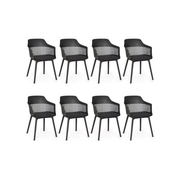 Kit 8 Cadeira Marcela Montreal em Polipropileno Assento Estofado Preto preto