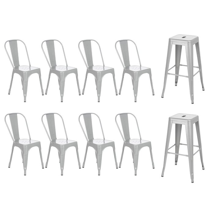 Kit 8 cadeiras + 2 banquetas altas industrial Loft Vintage Iron Tolix prata