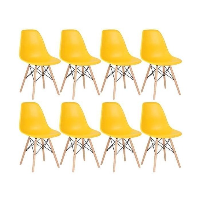 Kit 8 Cadeiras Charles Eames Eiffel Dsw - Base de Madeira Clara - Amarelo Multicolorido
