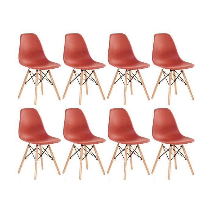 Kit 8 Cadeiras Charles Eames Eiffel Dsw - Base de Madeira Clara - Terracota