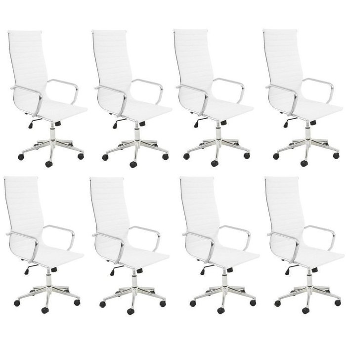 Kit 8 Cadeiras de Escritório Presidente Giratória Sevilha Rivatti Branco
