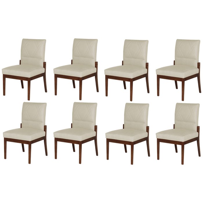 Kit 8 Cadeiras de Jantar Aurora Base Madeira Maciça Estofada Suede Bege