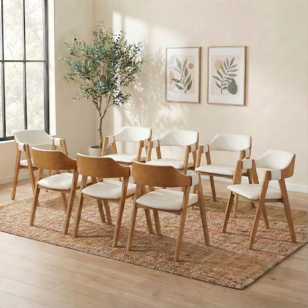 Kit 8 Cadeiras de Jantar Dália em Madeira Maciça e Corino - A solução completa para renovar sua sala de jantar com robustez e elegância prática.