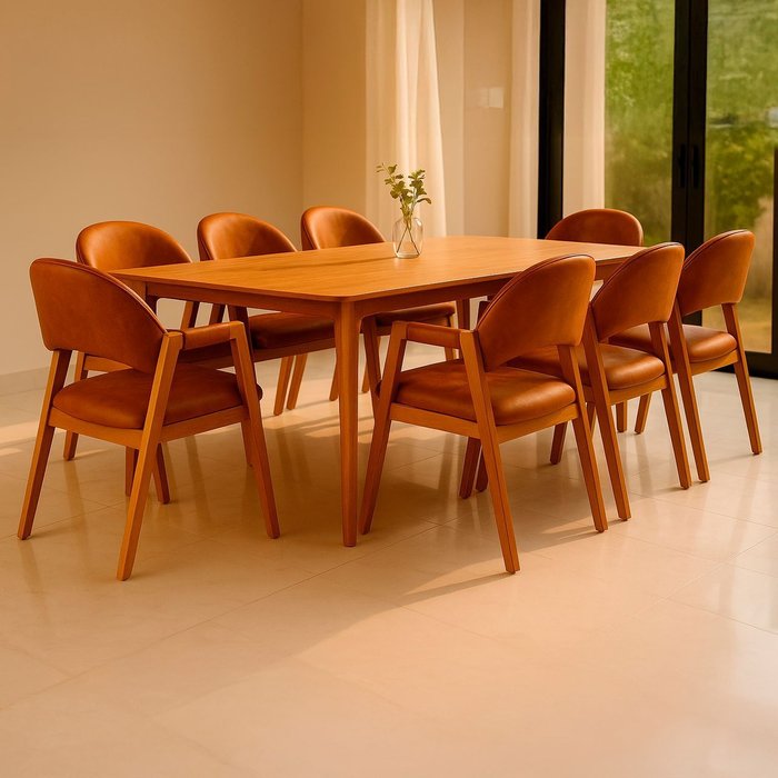 Kit 8 Cadeiras de Jantar Noah Estofada com Braço Madeira Maciça Corino Caramelo - Arkell
