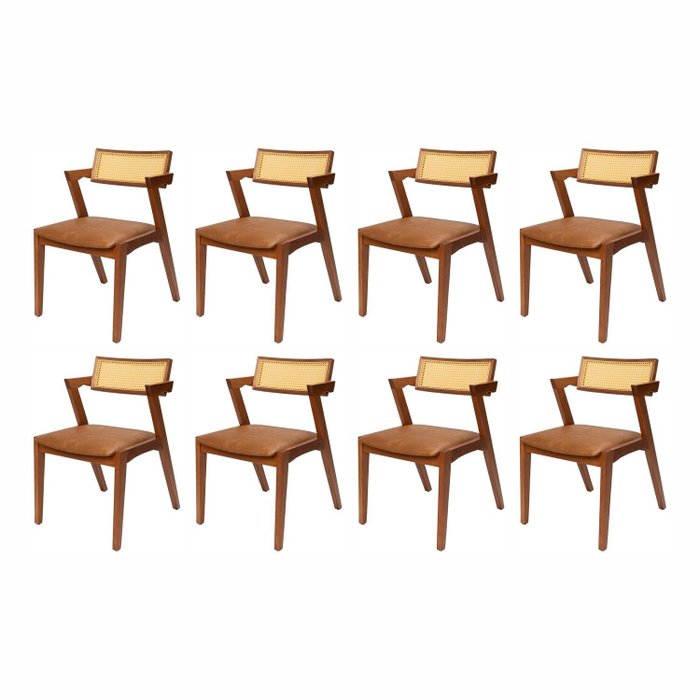 Kit 8 Cadeiras de Madeira Maciça com Assento Estofado Zahara Living Outdoor Espresso Móveis imbuia/Conhaque