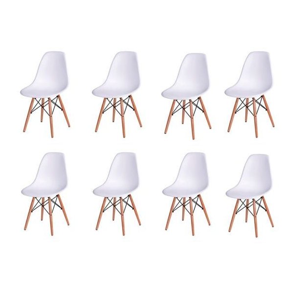 Kit 8 Cadeiras Eames Design Base Madeira Assento Branco Branco