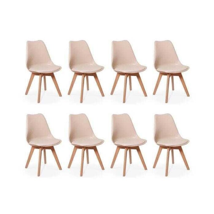 Kit 8 Cadeiras Eames Wood Leda Design - Nude Bege