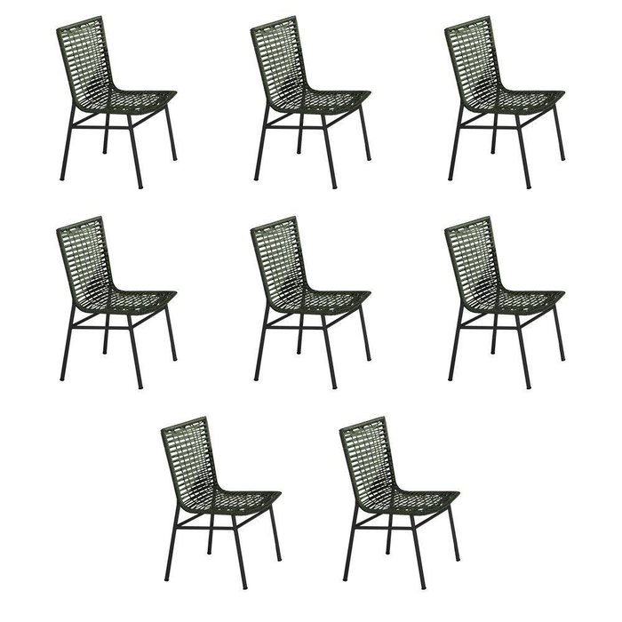 Kit 8 Cadeiras Em Corda Náutica Verde E Alumínio Preto Veneza Para área Externa - Cor: Verde
