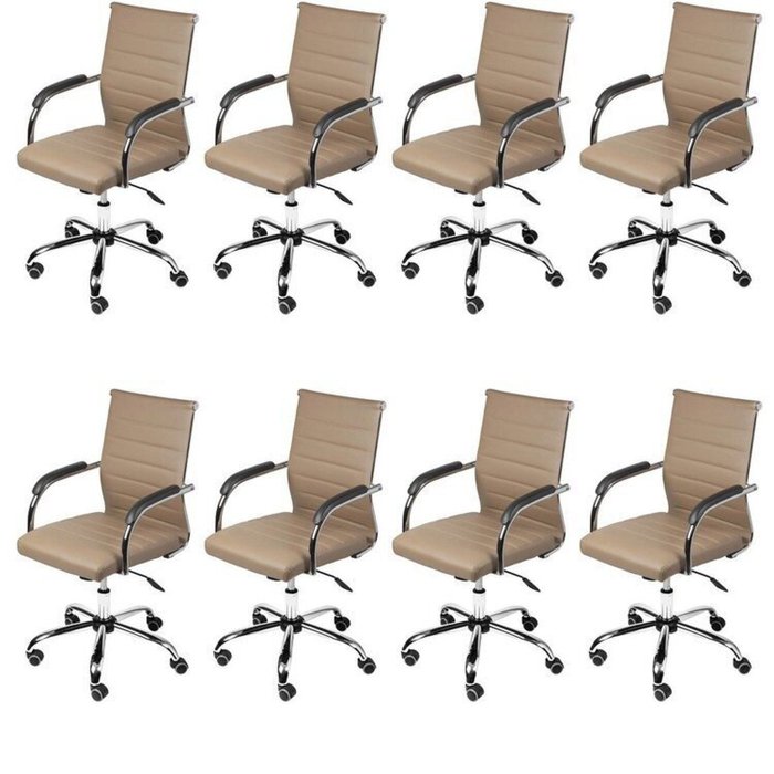 Kit 8 Cadeiras Escritório Diretor com Rodízio Esteirinha Florença 3322 Caramelo