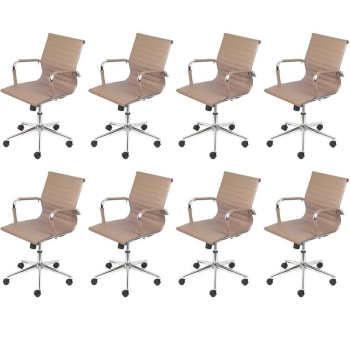 Kit 8 Cadeiras Escritório Diretor Esteirinha Rodízio Relax Corino 3301 Caramelo