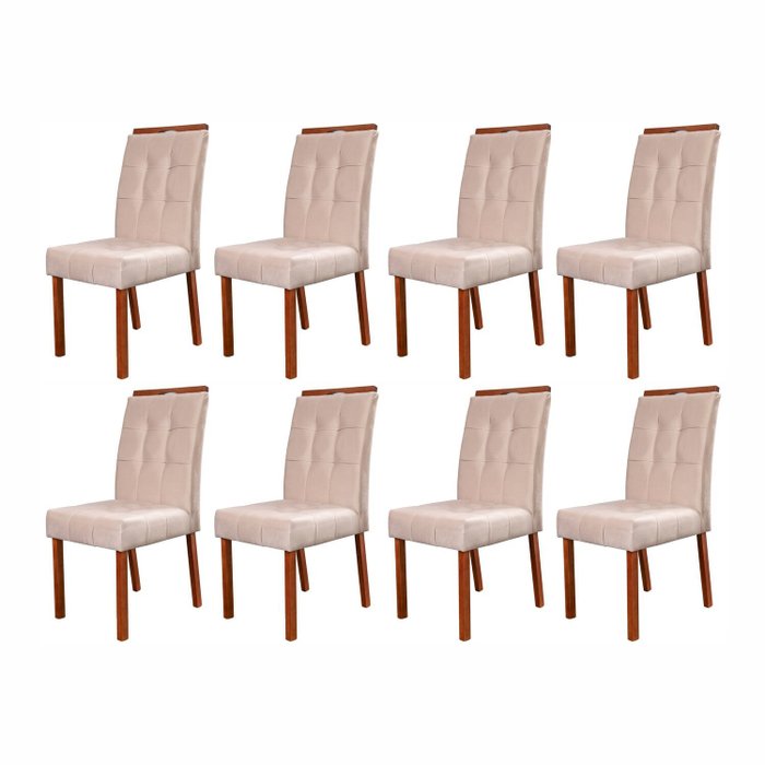 | Itens Inclusos | Conjunto de 8 cadeiras em Madeira Maciça e Estofada Sophia Authentic |