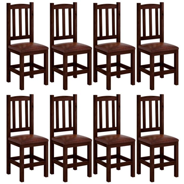 Kit 8 Cadeiras Madeira Maciça Estofado Corino Marrom Diamante Cor Castanho Nemargi