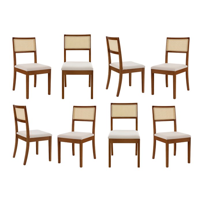 Kit 8 Cadeiras Madeira Maciça Tiê CabeCasa MadeiraOriginals Amêndoa/Bege claro