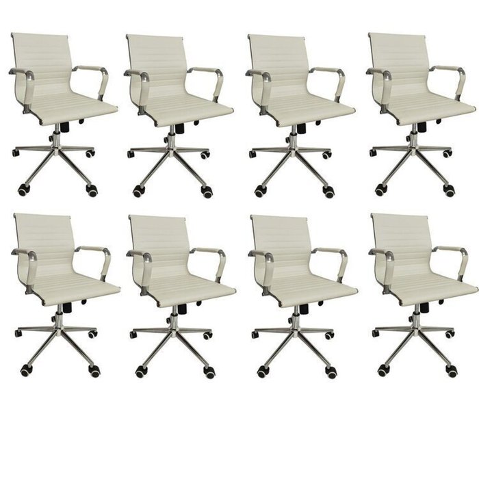 Kit 8 Cadeiras Office com Rodízio e Encosto Esteirinha Baixa Branco