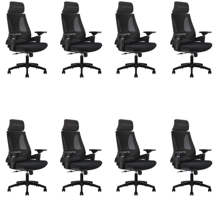 Kit 8 Cadeiras Office Diretor Toledo com Apoia Cabeça e Braços 3d Nr17 Preto