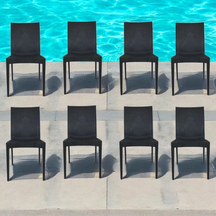 Kit 8 Cadeiras Rattan Preta em Pp para Restaurantes Sala de Jantar Cozinha Área Externa Ecomhome Preto