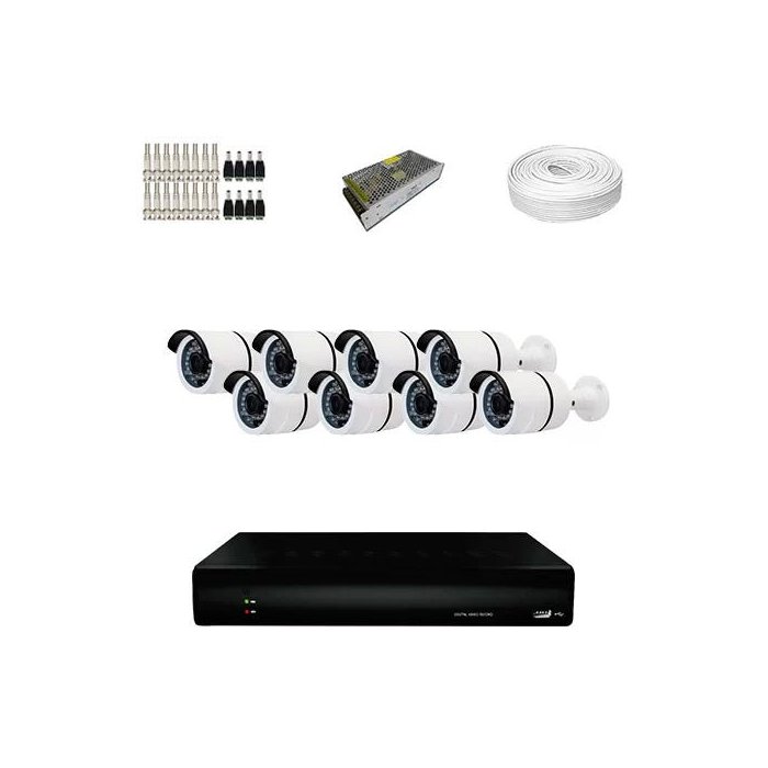 KIT DVR 8 Canais 1080n + 8 Câmeras Bullet AHD + Acessórios