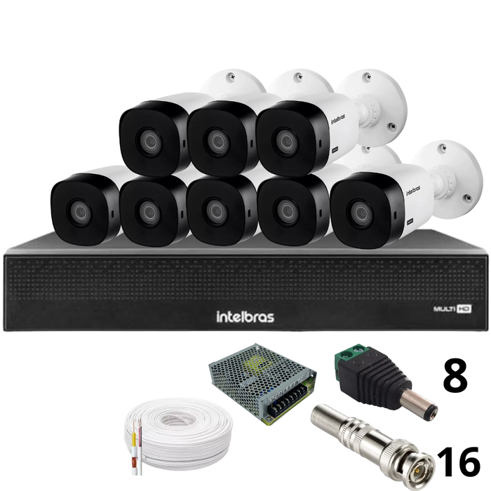 Kit 8 Câmeras Intelbras 1120b Full Hd Dvr Mhdx 1016-c Intelbras com Detecção de Movimentos sem Hd