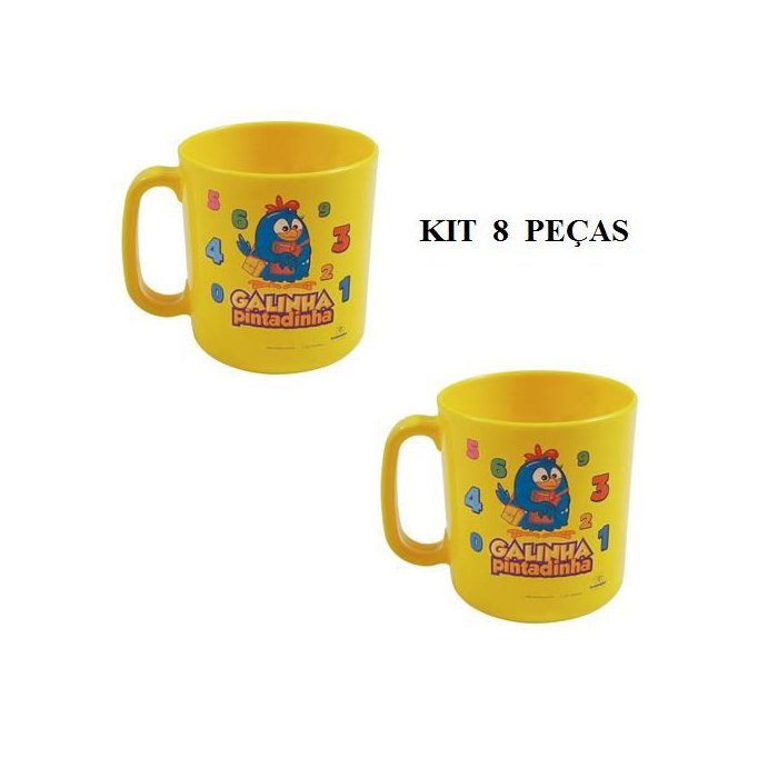 KIT COM 8 Canecas Galinha Pintadinha - infantil - plástica - 400 ml - mexbras Caneca da Galinha Pintadinha, feita em plástico atóxico e estampada com a personagem mais querida das crianças! Caneca com capacidade de 400 ml., pode ser utilizada como lembrancinha ou ainda na companhia para a escola!