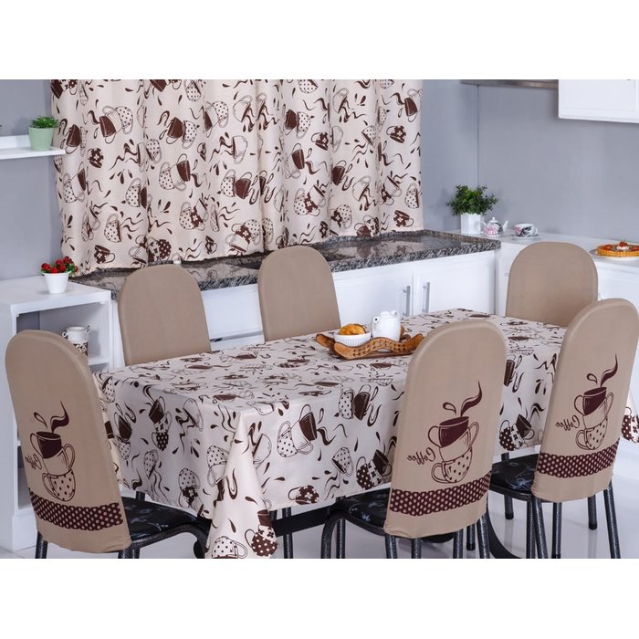 Kit 8 Capas de Cadeira + Toalha de Mesa 2,50 X 1,40 Encosto Tubular Cozinha Sala de Jantar:café Bege